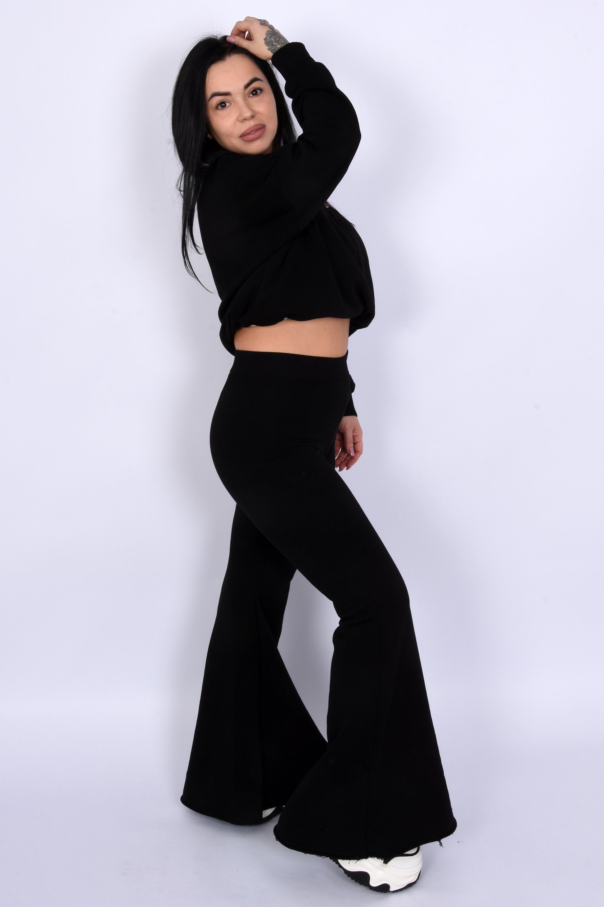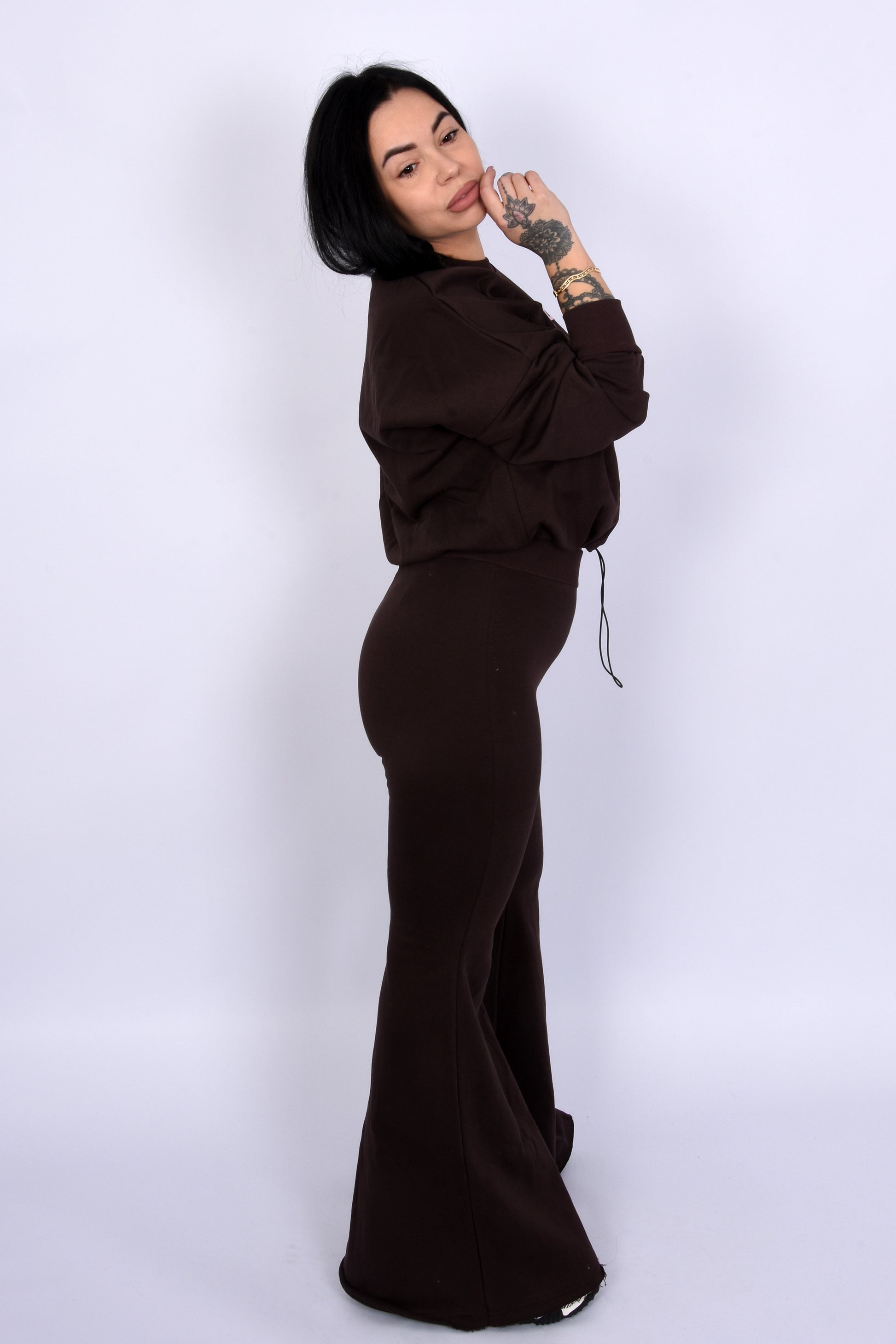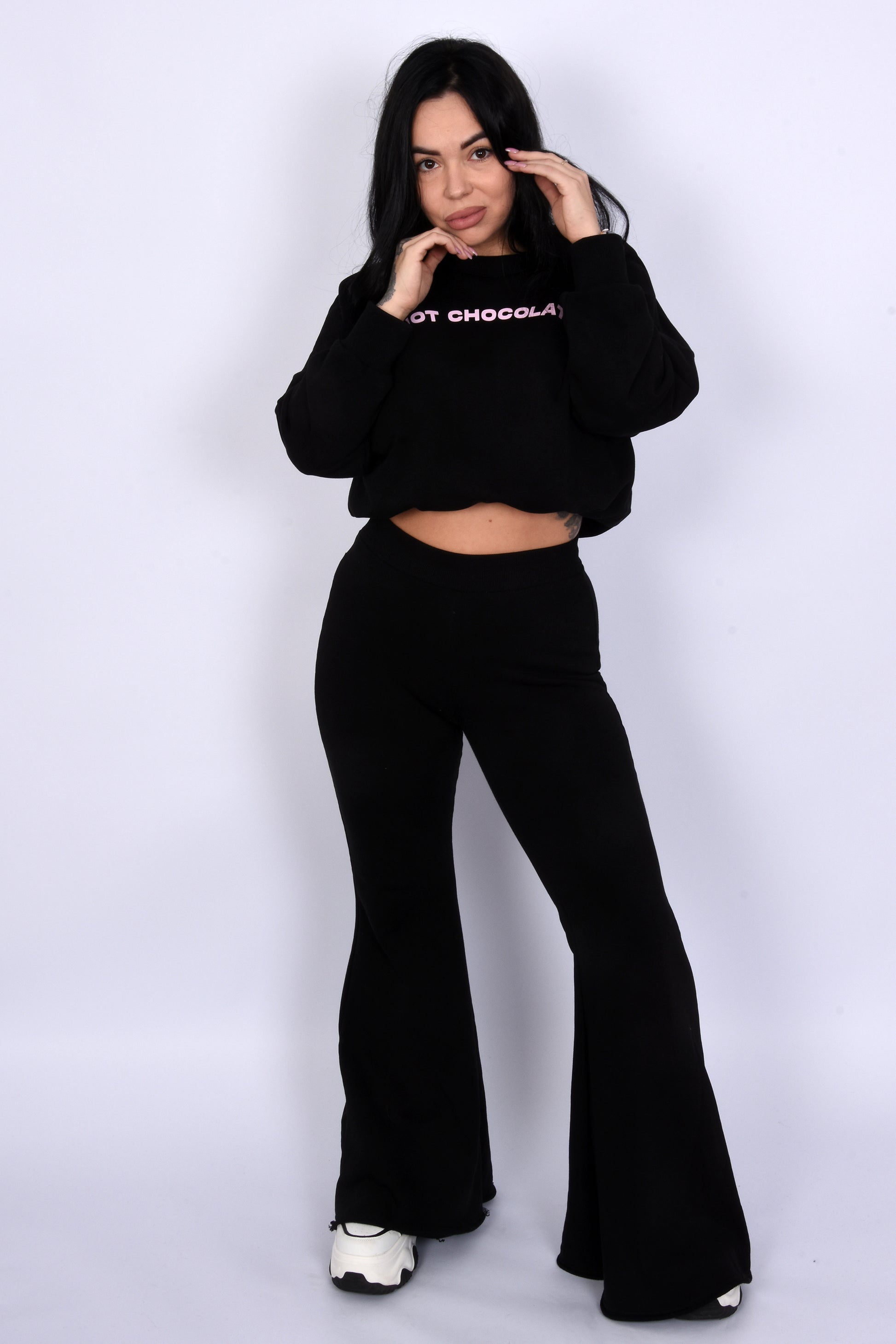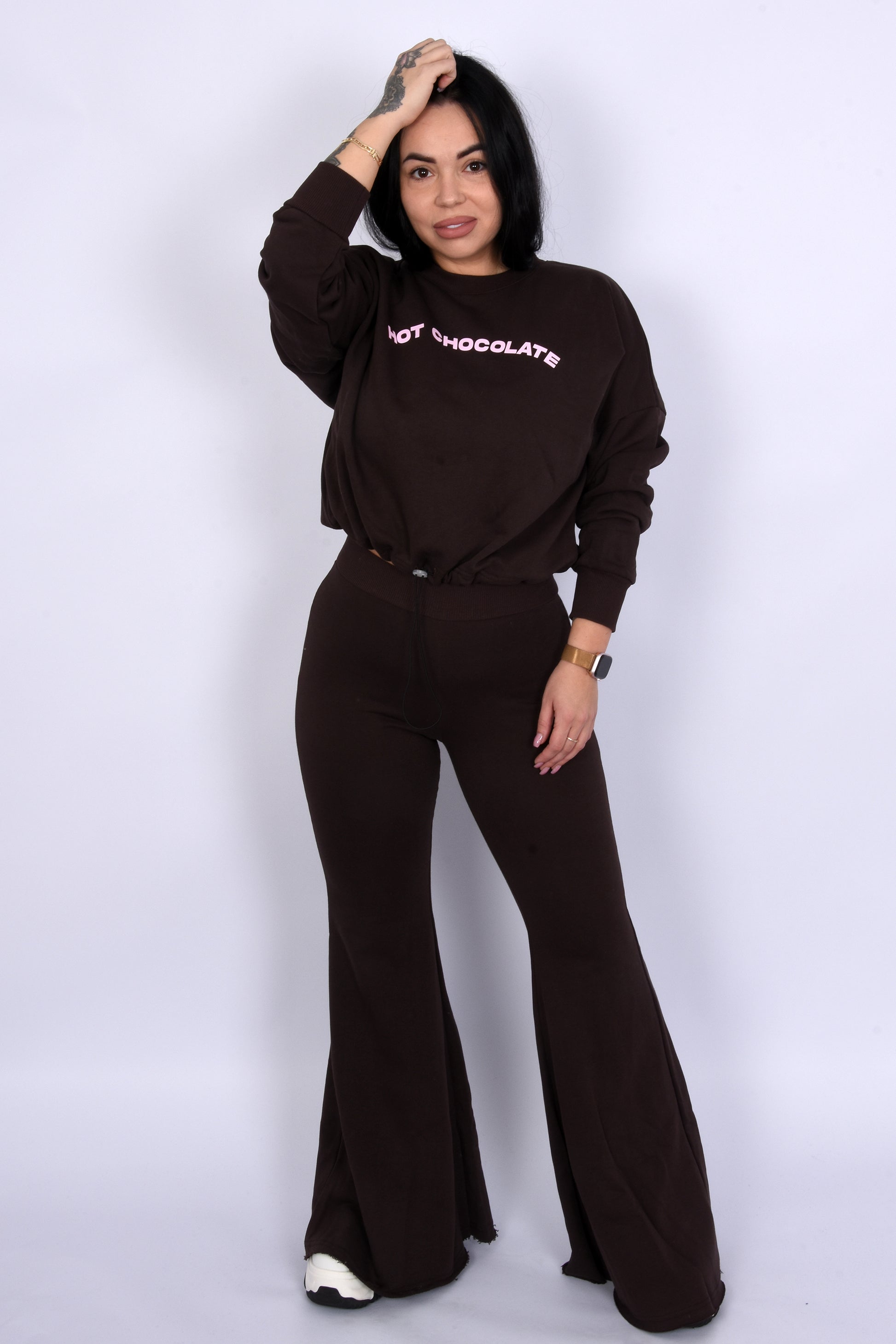 A set that perfectly combines comfort and style. The Hot Chocolate Lounge Set impresses with its relaxed, oversized cut, pleasantly soft material, and modern design – ideal for everyday wear, travel, or laid-back city looks. The High-Waist trousers create a flattering silhouette without feeling restrictive.